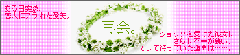 ![]() ある日、突然恋人にフラれた愛美。 ショックを受けた彼女にさらに不幸が襲い、そして待っていた運命は……。 続編、完結しました! 長編小説『ブルースター』愛美と優二が再会した後のお話デス。 【検索キーワード】事故 OL 幽霊 HOMEに戻りたい方はコチラから入りなおして下さいませ。 管理者である式部雪花々にあります。 無断転載、転写、複写は一切禁止、お断りしております。 二次創作でのご利用もご遠慮くださいませ。 また、背景等に使用されている素材の著作権は、 全てお借りしている素材サイト様に帰属しております。 こちらも転載禁止です。 |